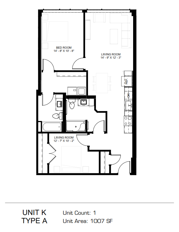 In addition, this apartment community features a Fitness Center, Storage Units, Elevator, Bike Storage, and a Rooftop Patio where you can enjoy lounging around inside or out, taking advantage of the BBQ Grills, Firepits, and an Indoor Community Room that has TVs, fireplace, and a kitchenette.