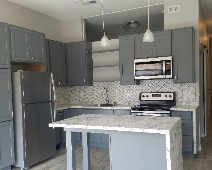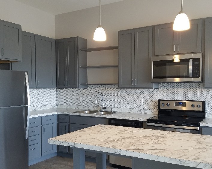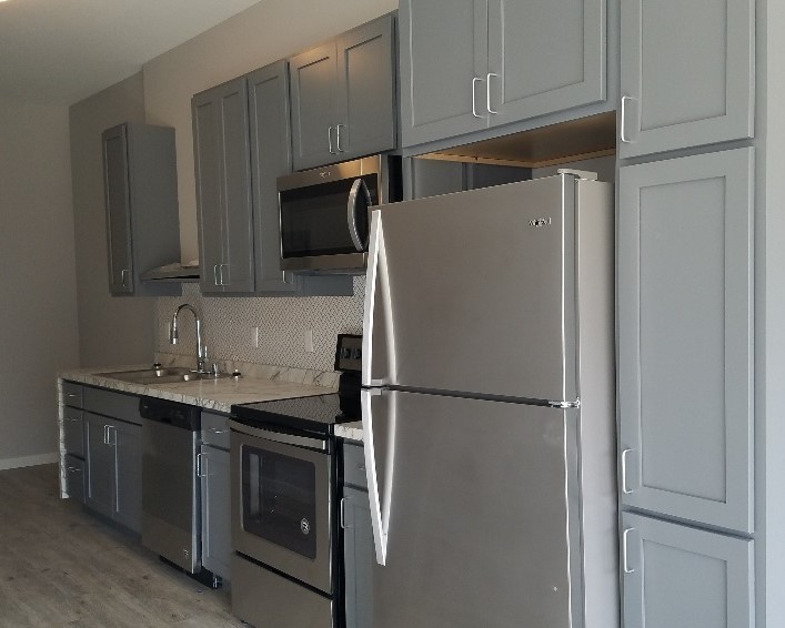 Stainless Steel Dishwasher, Microwave, Stove, and Refrigerator are Included.